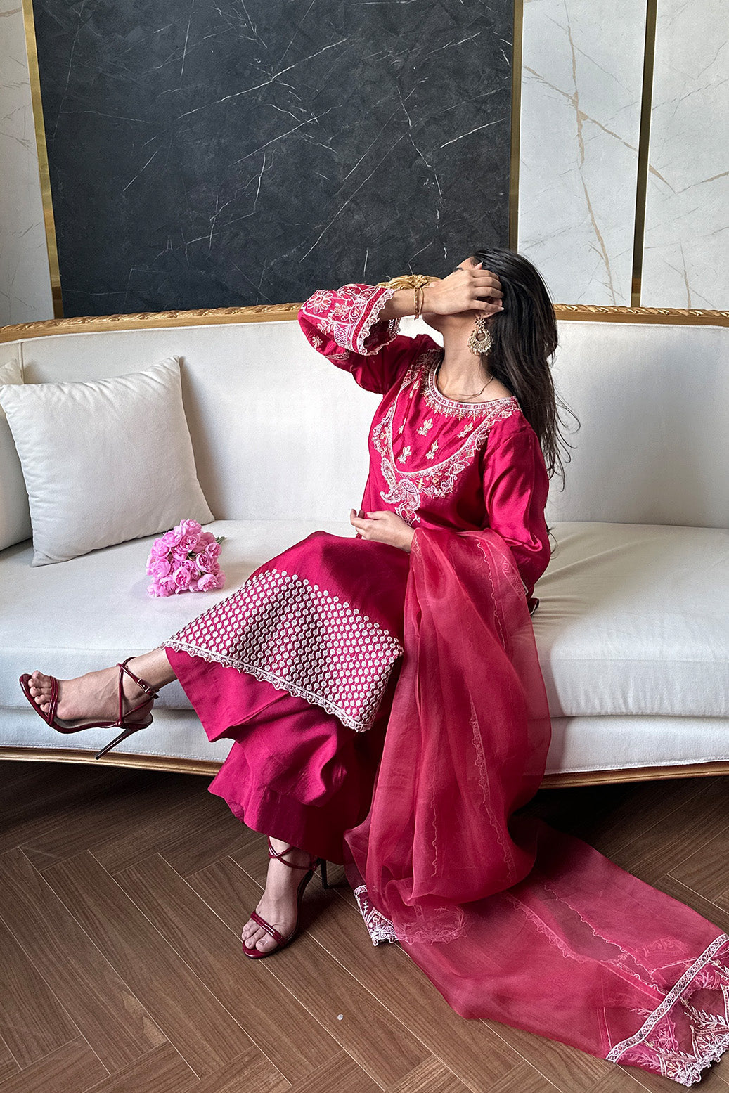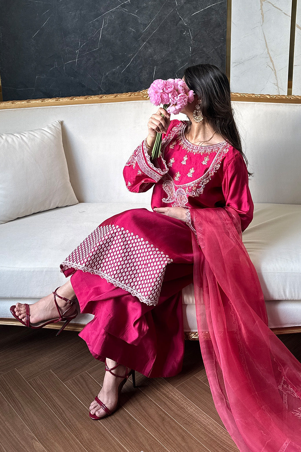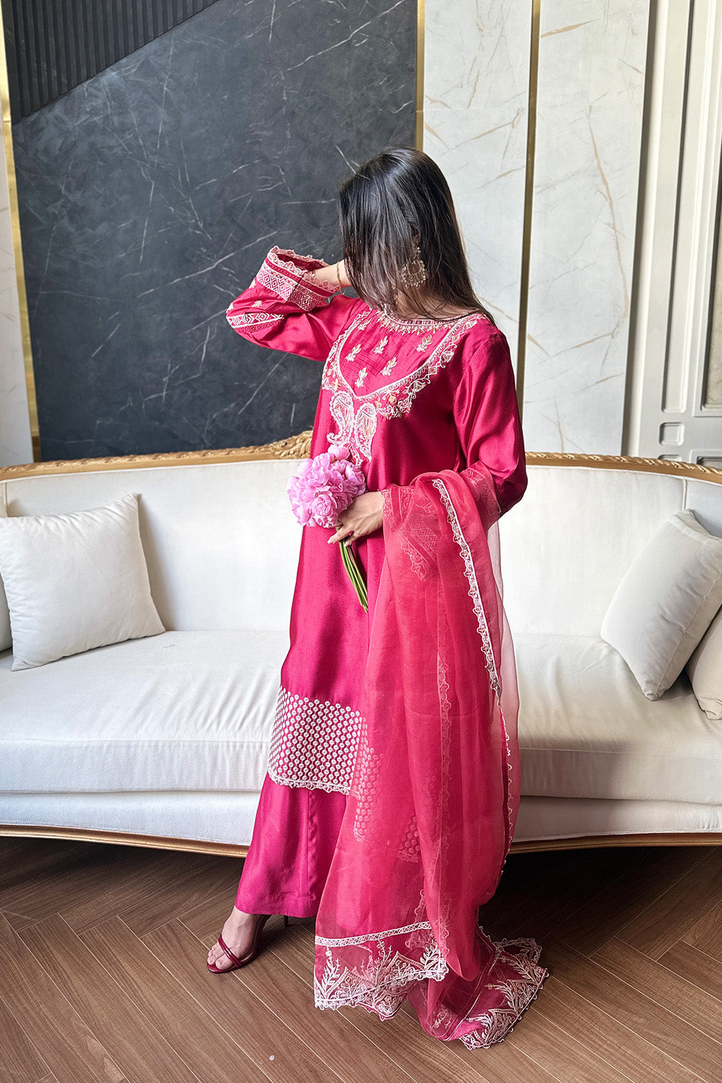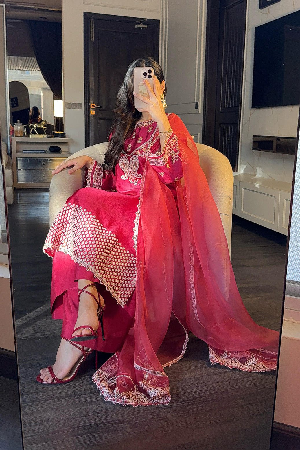 • Fancy Dyed Pure Organza Dupatta with Heavy Embroidery
