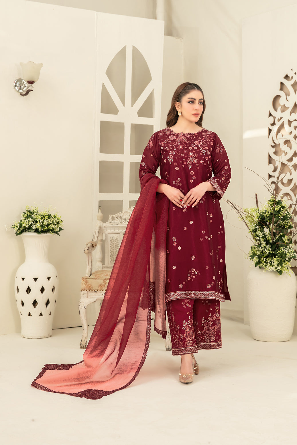 3 Piece Ready-to-wear By Tawakkal Fabrics, Luxury & Elegant Festive Khaas Collection comes with: