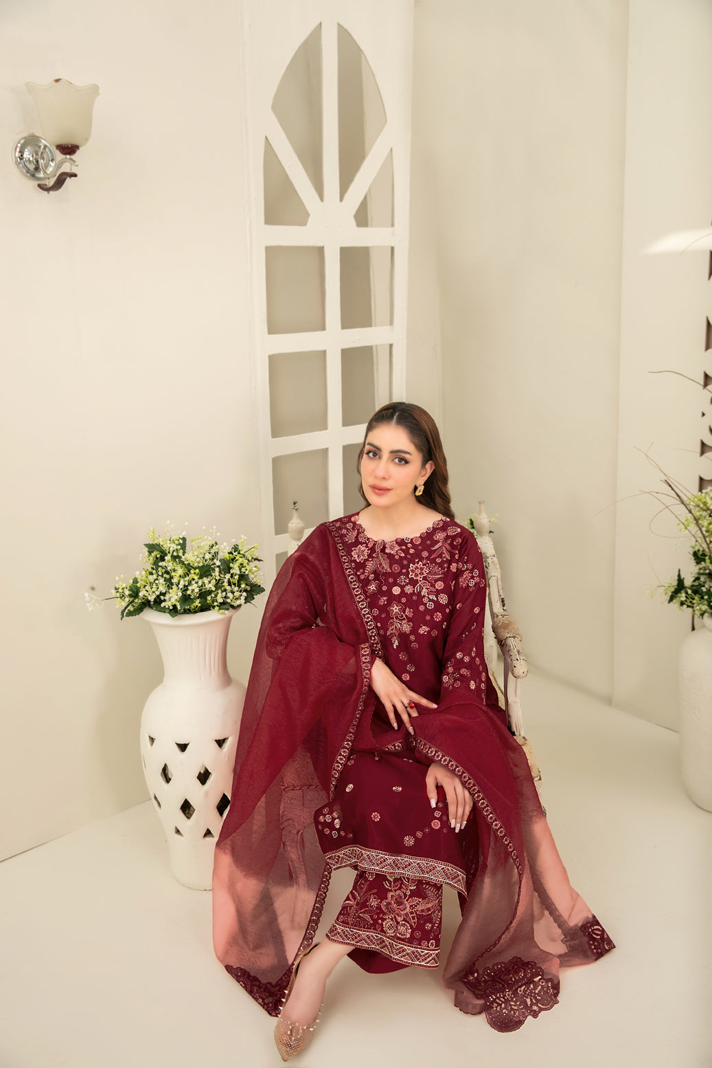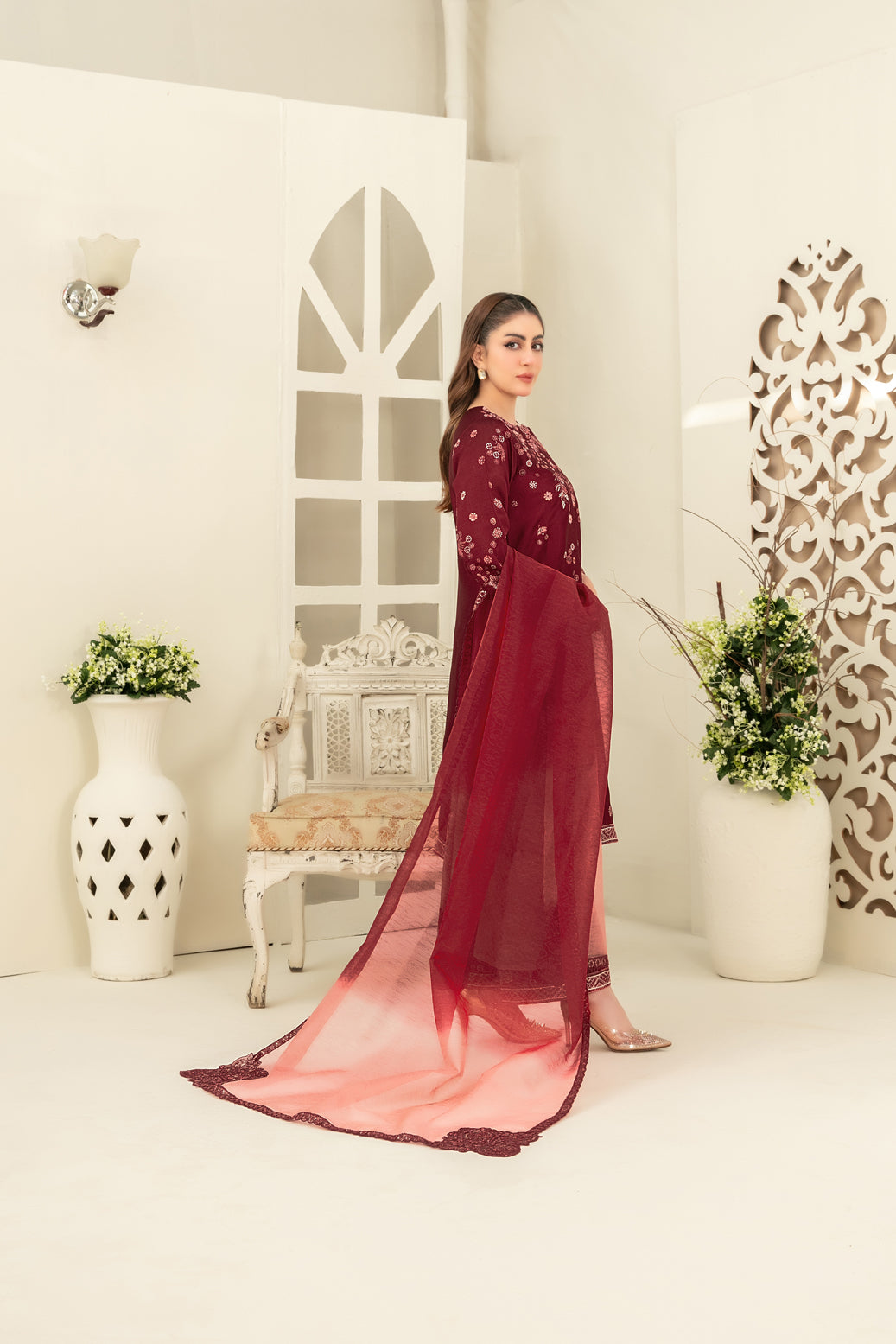 • Fancy Embroidered Jacquard Organza Dupatta
