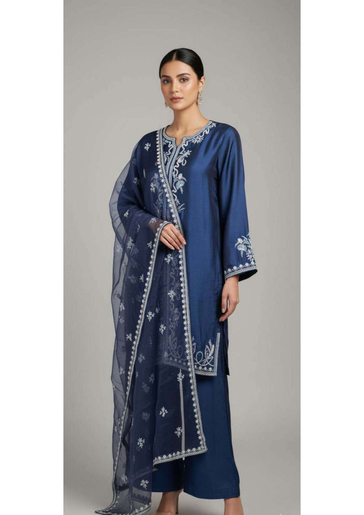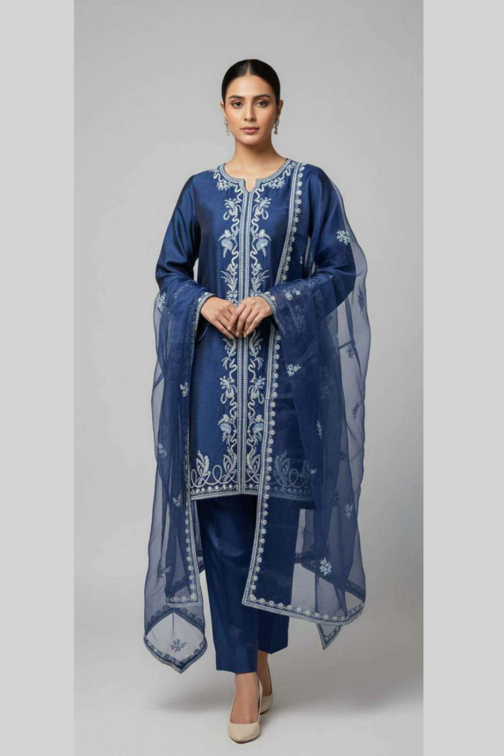 • Stitched Fancy Embroidered Pure Sheesha Silk Shirt Designs